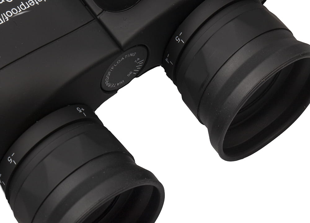 Lornetka posiada wbudowany kompas kierunkowy oraz podziałkę dalmierzową w prawym okularze.