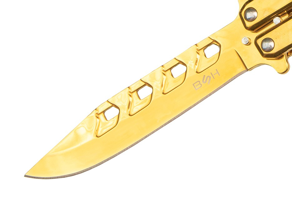 Nóż motylkowy BSH ADVENTURE w złotym, ekskluzywnym kolorze.