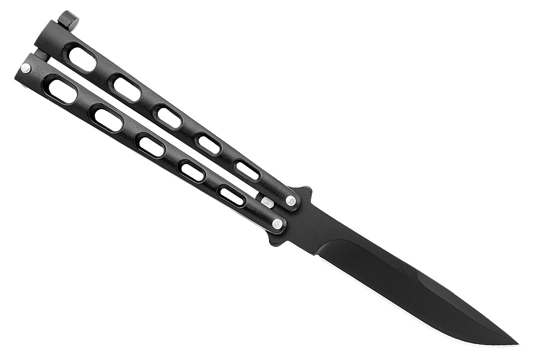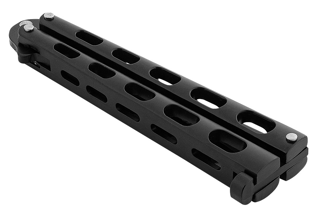 Elegancko wyglądający i bardzo solidnie wykonany nóż motylkowy w czarnym, klasycznym kolorze.