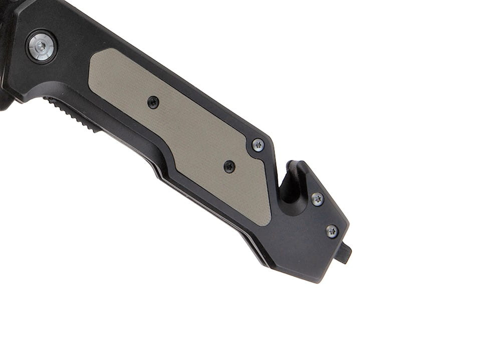 Nóż ratowniczy otwiera się błyskawicznie za pomocą wspomaganego flippera.