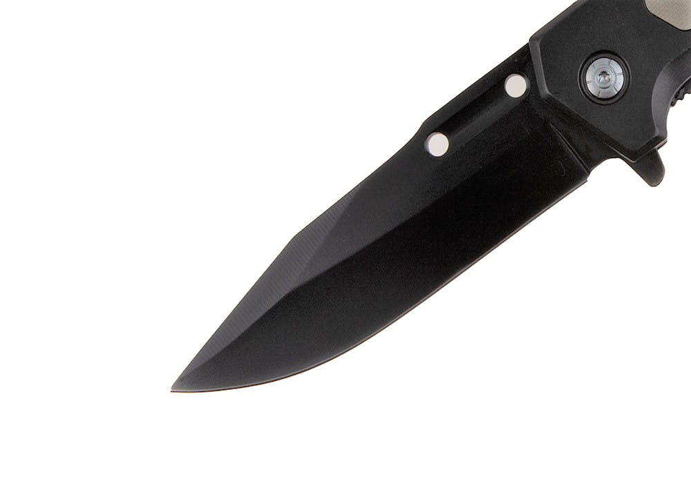 Głownia o tradycyjnym profilu typu clip point została wykonana ze stali nierdzewnej typu 420.