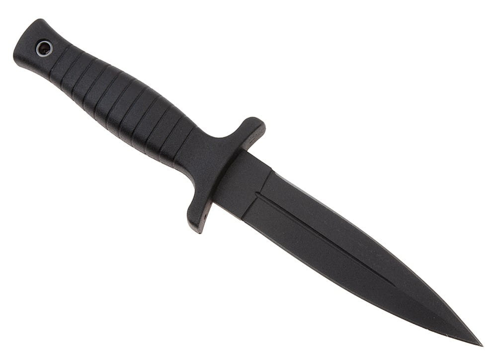 Wojskowy nóż do rzucania posiada dwustronne ostrze, które jest idealne do wykonywania rzutów.