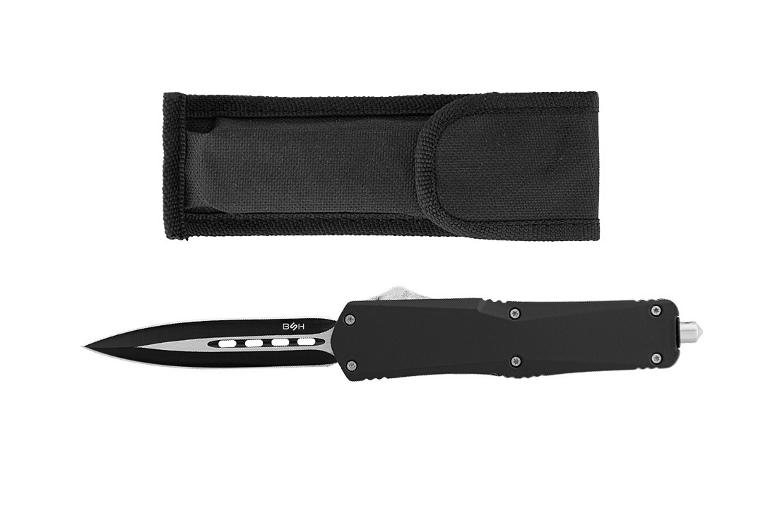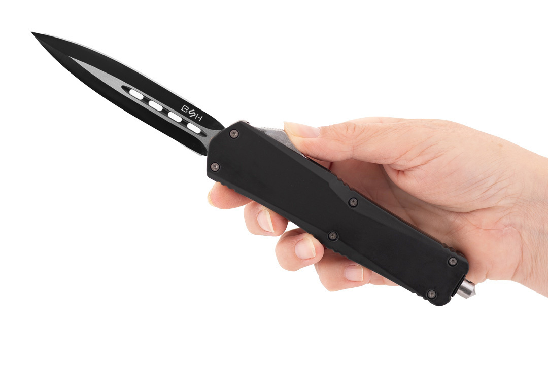 Model OTF-15 charakteryzuje się głownią typu dagger (sztylet) o podwójnym ostrzu, która zapewnia doskonałą precyzję cięć.