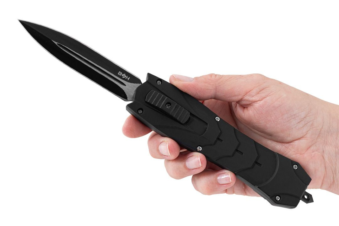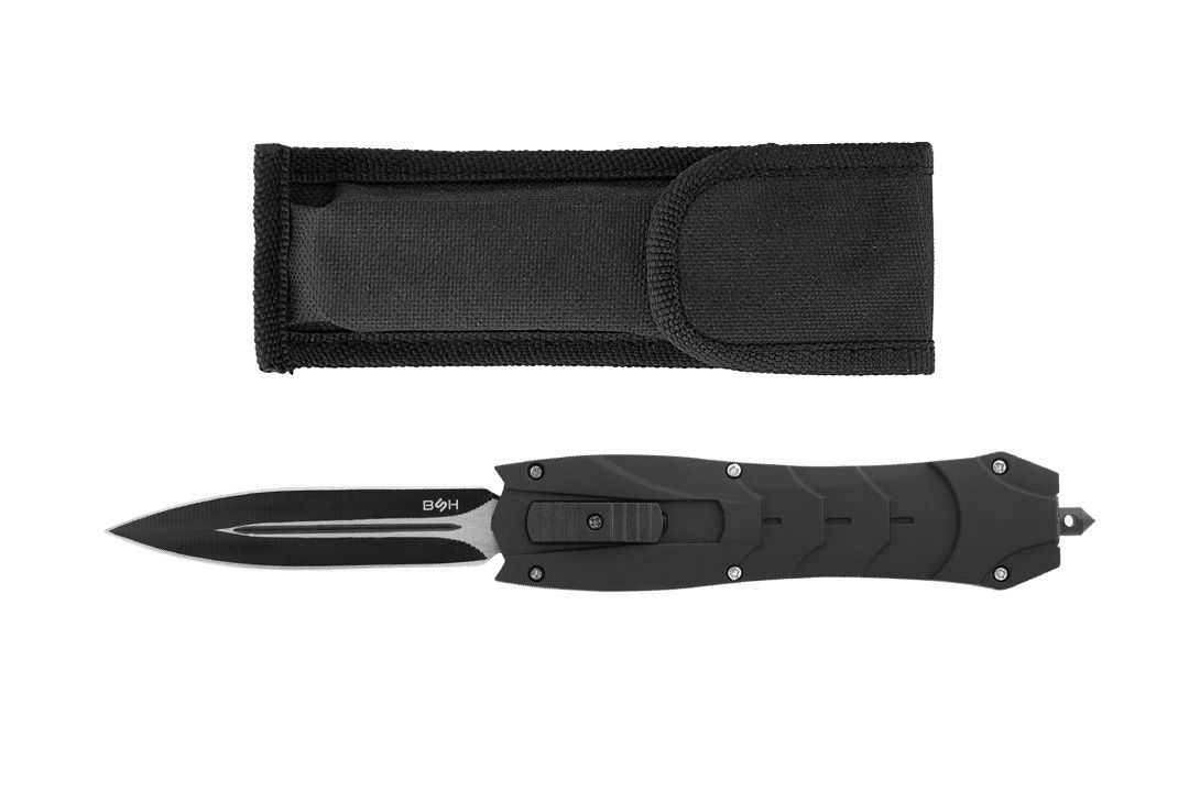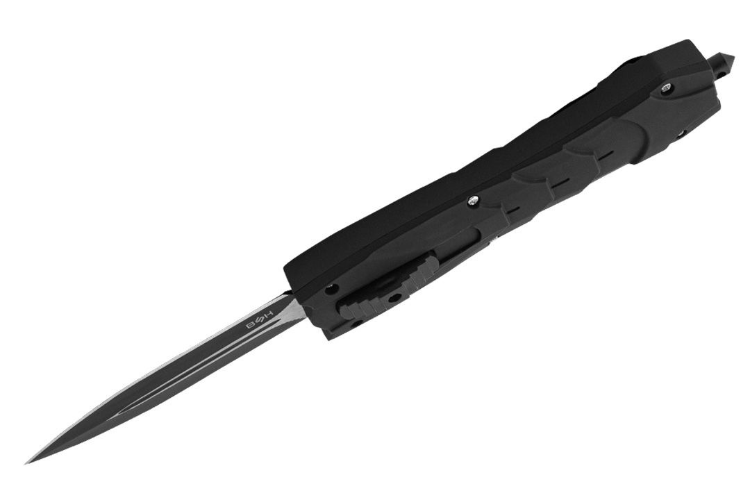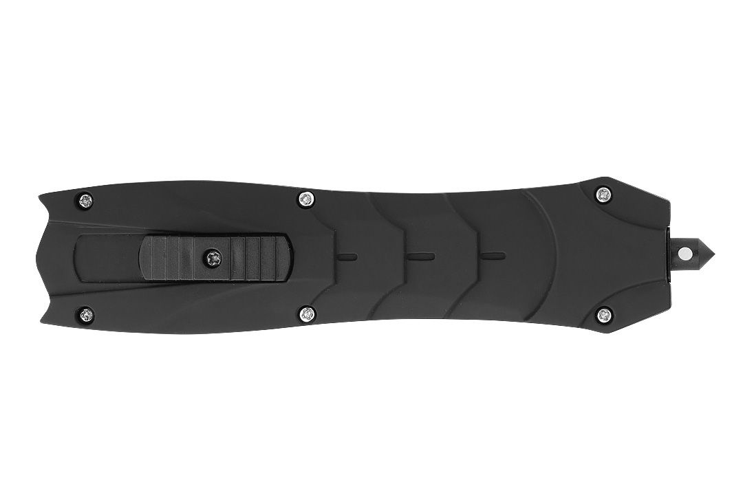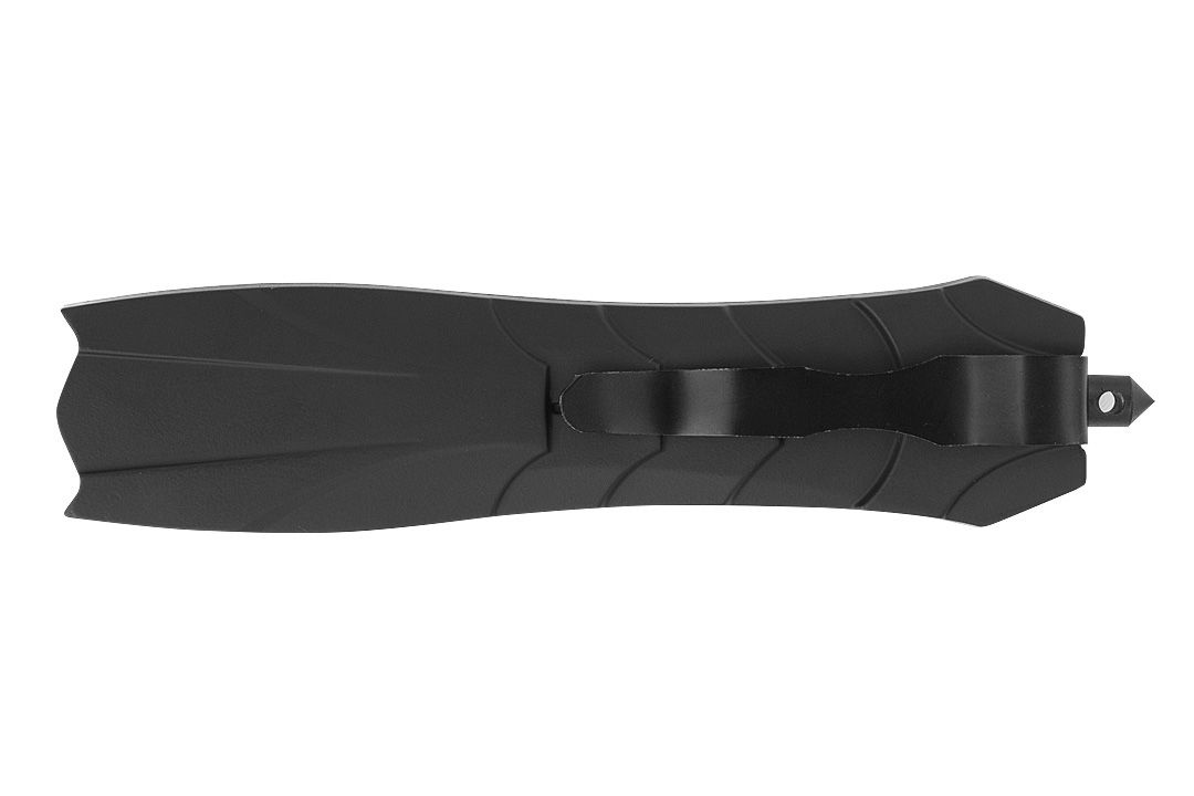 Model OTF-20 charakteryzuje się ostrzem, które automatycznie wysuwa się i chowa w rękojeści, zapewniając wygodę i szybkość działania. Nóż posiada głownię typu dagger (sztylet) o podwójnym ostrzu, idealną do precyzyjnych cięć. Dodatkowo, stylowe czernienie nadaje mu oryginalny i nowoczesny wygląd. Wzdłuż rękojeści znajdują się wycięcia, które poprawiają pewność chwytu.