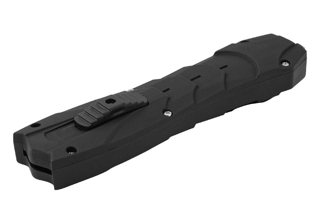 Mega Lekki nóż sprężynowy typu OTF (Out The Front), z ostrzem wysuwanym od frontu.