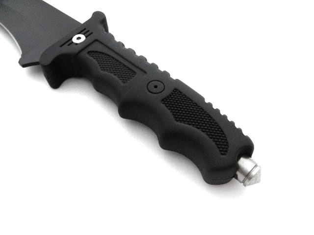 W tylnej części umieszczono metalowy zbijak do szyb.