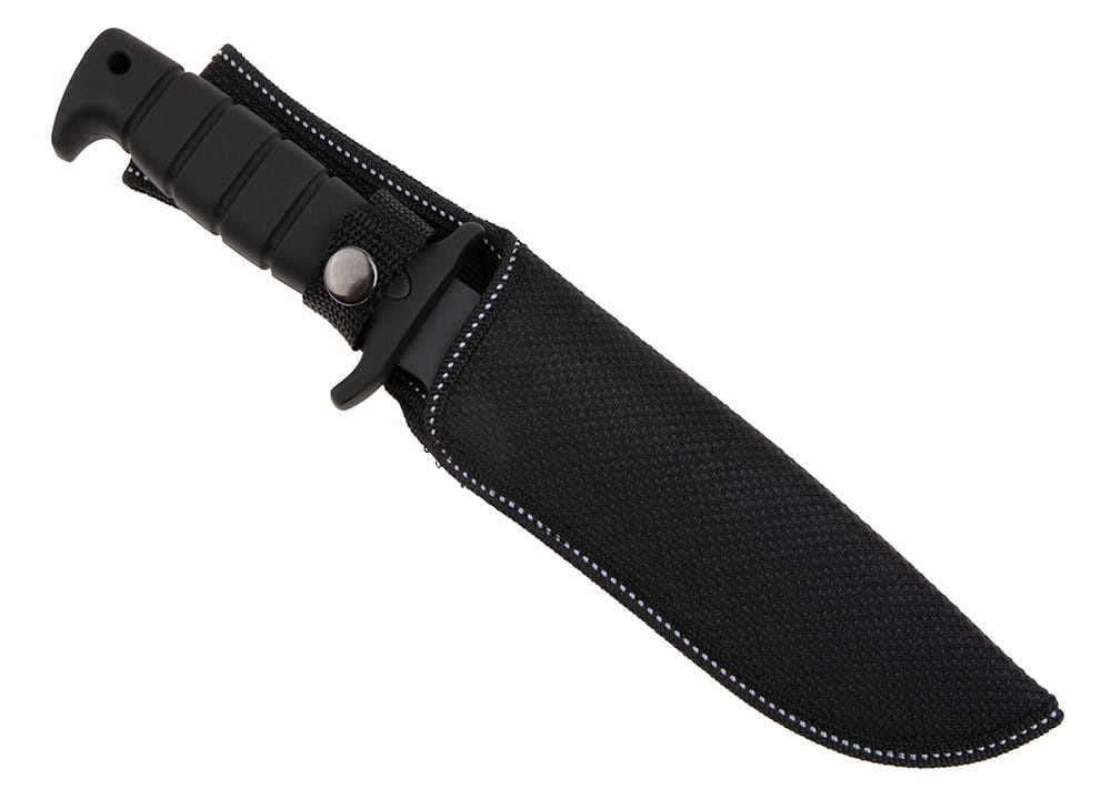 Nóż N-293 posiada w zestawie klasyczną, czarną kaburę, z możliwością przymocowania jej do paska spodni.