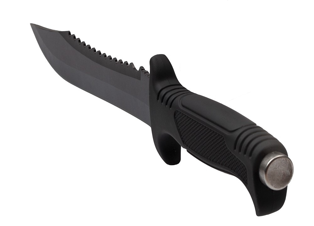 Materiał został dodatkowo pokryty czarną powłoką ochronną, która skutecznie niweluje efekt odblasku oraz chroni nóż przed korozją.
