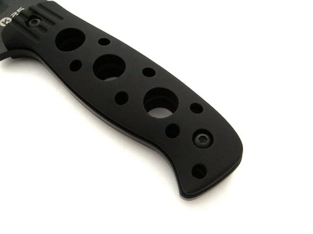 W dolnej części znajduje się wypustka pełniąca funkcję jelca, a na grzbiecie wykonano specjalne karbowanie, które umożliwia oparcie kciuka podczas wykonywania prac.