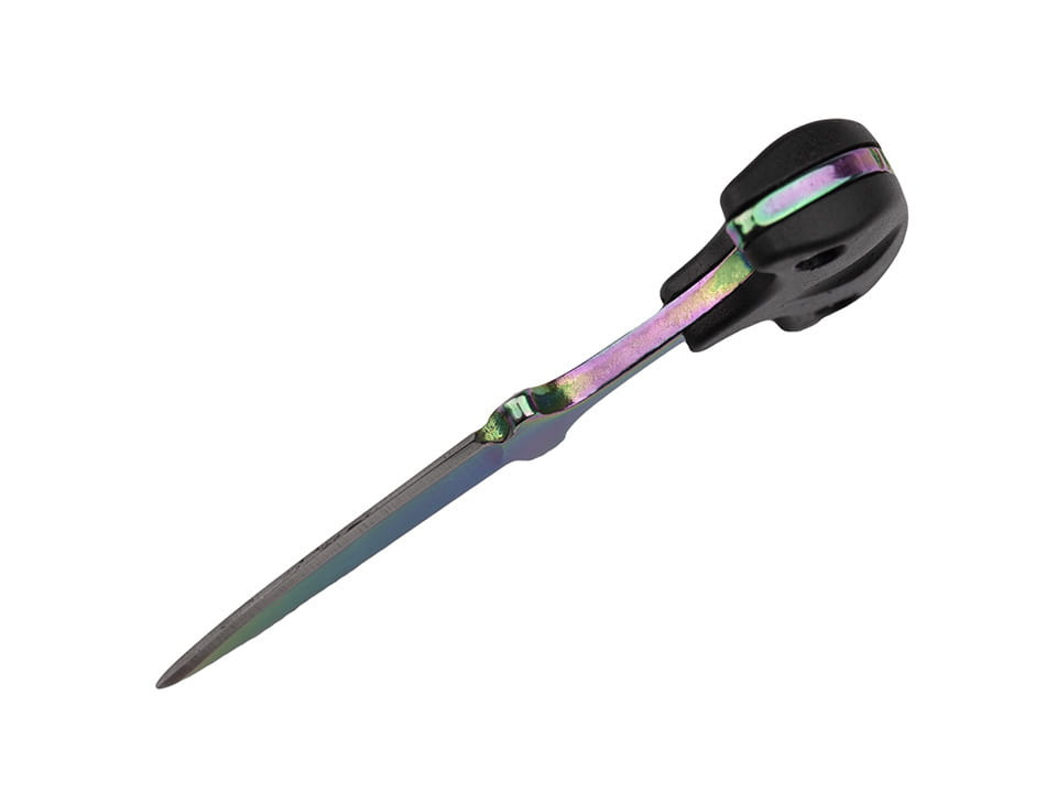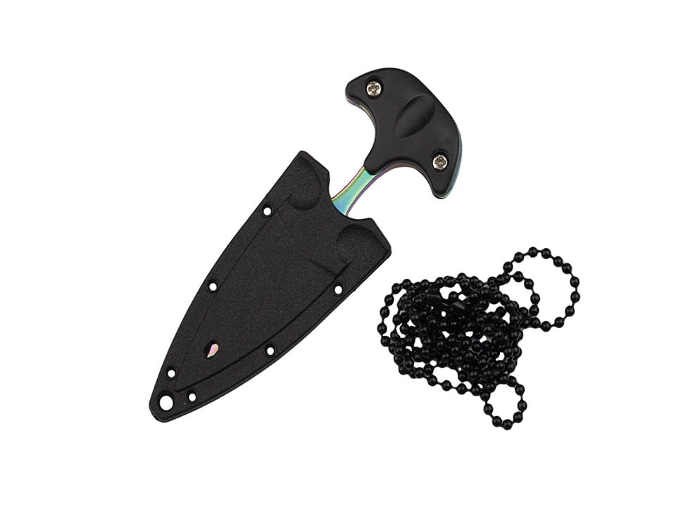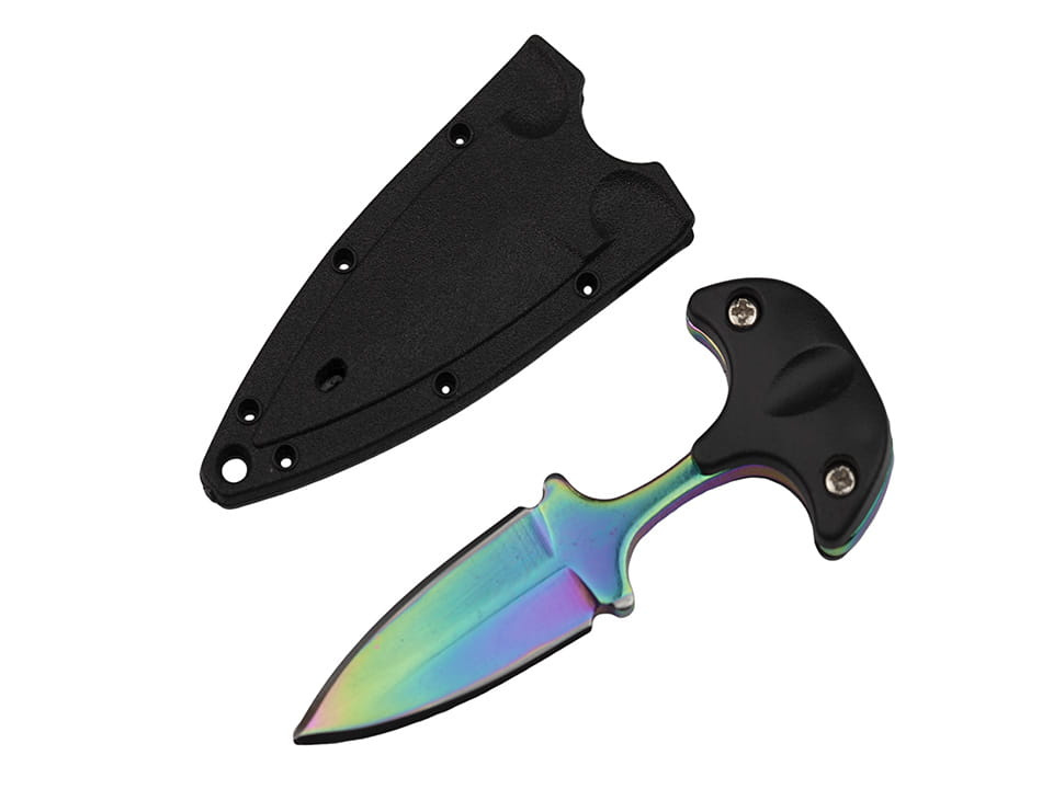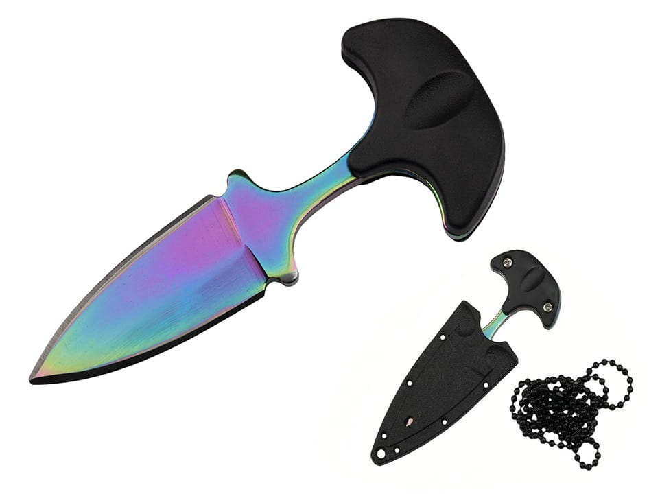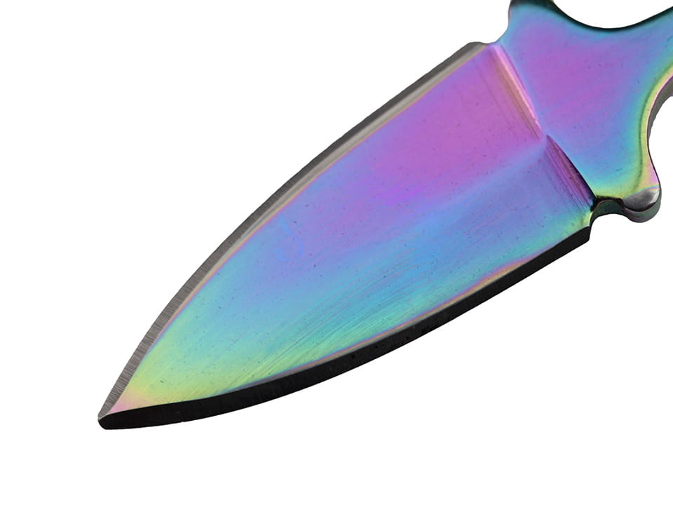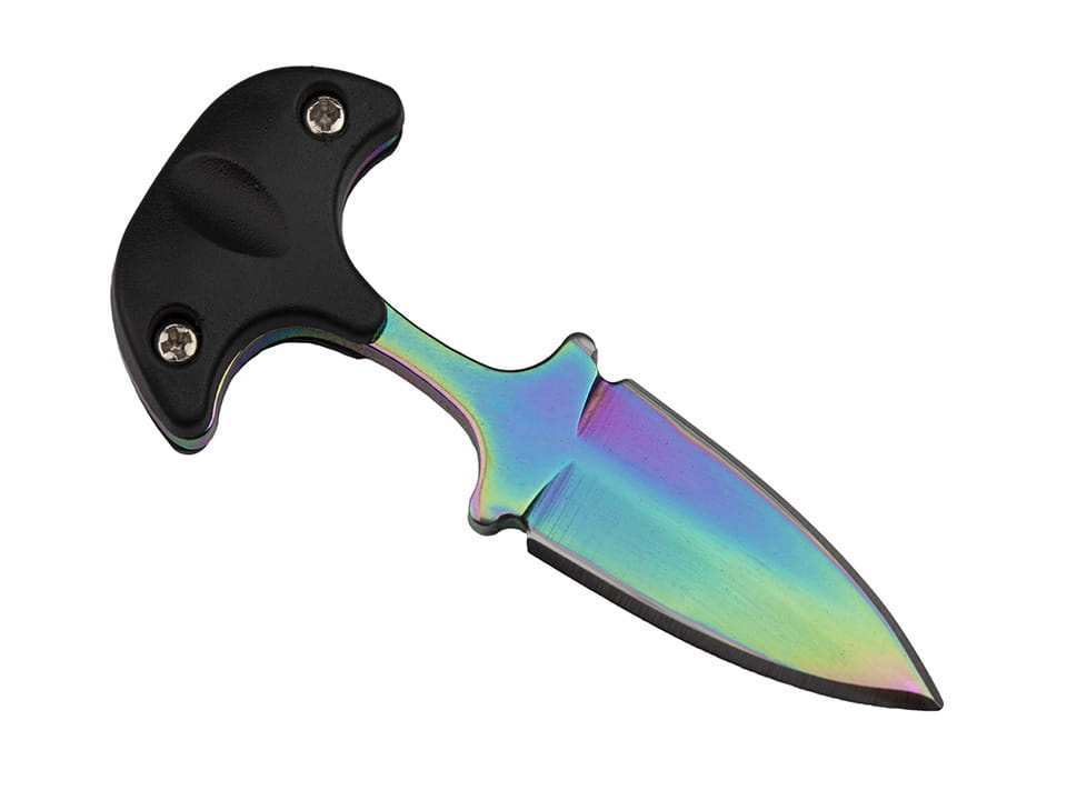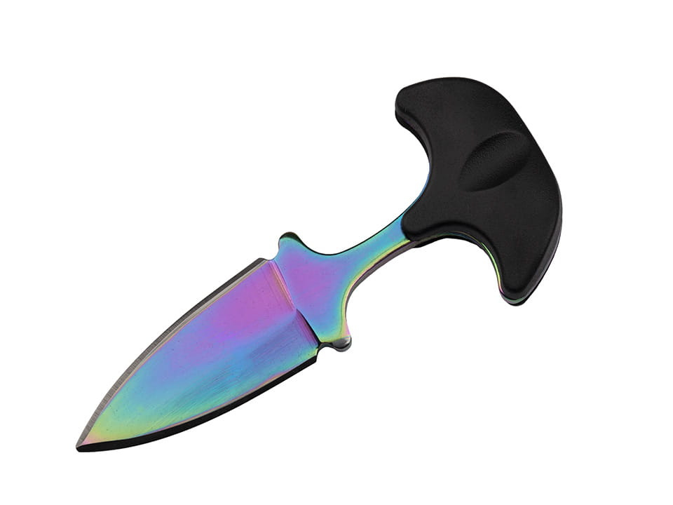 Nóż taktyczny typu push dagger w przykuwającym wzrok kolorze rainbow fade.