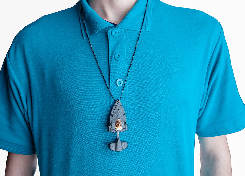 Dodatkowo można przewlec przez niego dołączony w zestawie czarny łańcuszek i zawiesić na szyi.