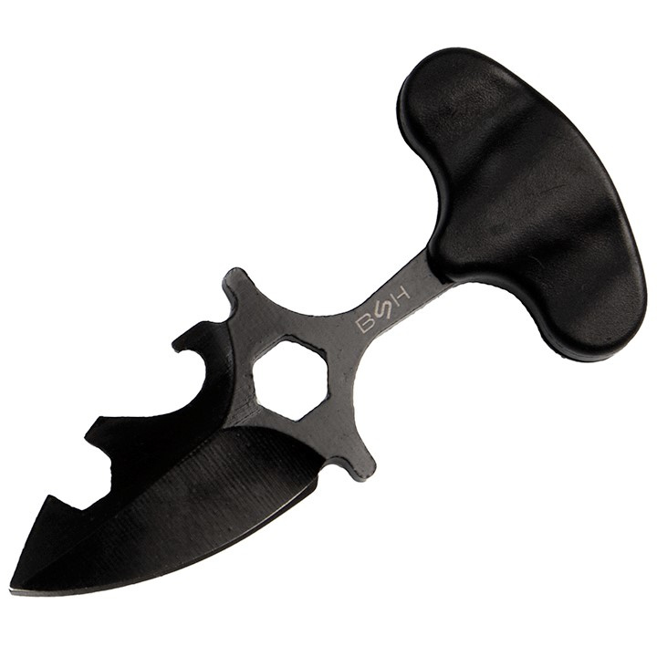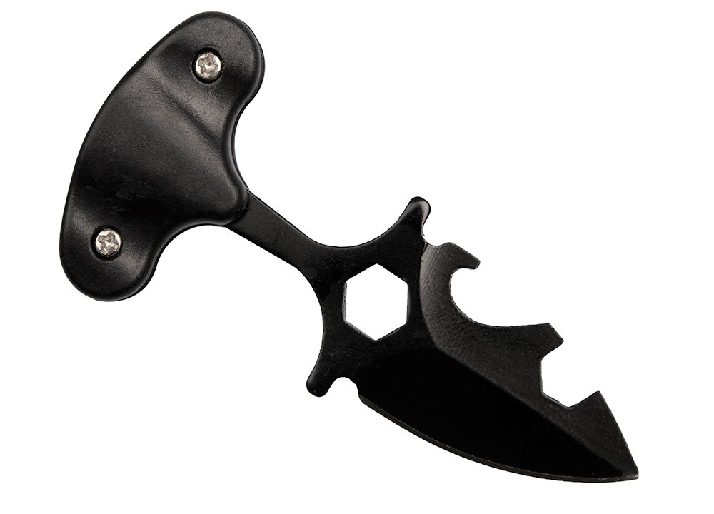 Z jednej strony został wyposażony w klasyczne ostrze typu dagger, z drugiej w otwieracz do kapsli oraz klucz płaski.