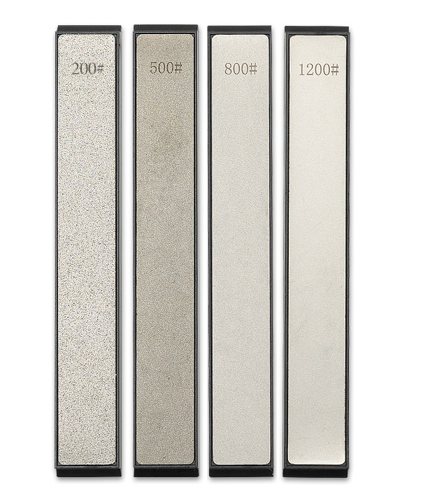 Zawiera diamentowe ostrzałki o różnej ziarnistości, dzięki którym możemy uzyskać idealną powierzchnię ostrza.