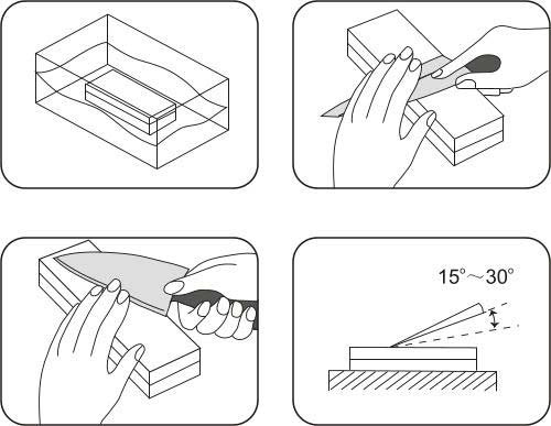 Ostrząc nóż staraj się zachować odpowiedni kąt pochylenia noża (15°-30°).