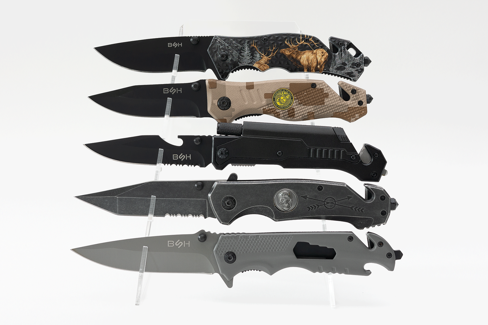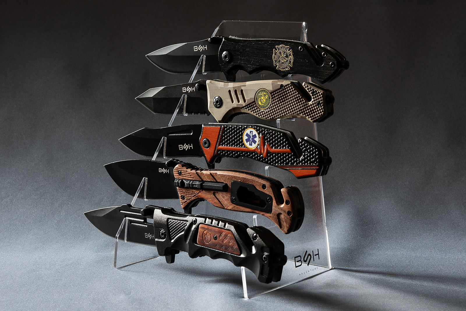 BSH ADVENTURE tu zaczyna się przygoda... Nieosiągalna wcześniej jakość w przystępnych cenach. Marka charakteryzuje się produkcją przede wszystkim wyrobów nożowniczych (taktycznych, myśliwskich, ratowniczych etc.), ale także akcesoriów turystycznych i do samoobrony. Wybierając BSH wybierasz rewelacyjny projekt, solidne wykonanie i niezawodny charakter. Każdy produkt będzie niezastąpionym elementem Twojego ekwipunku!