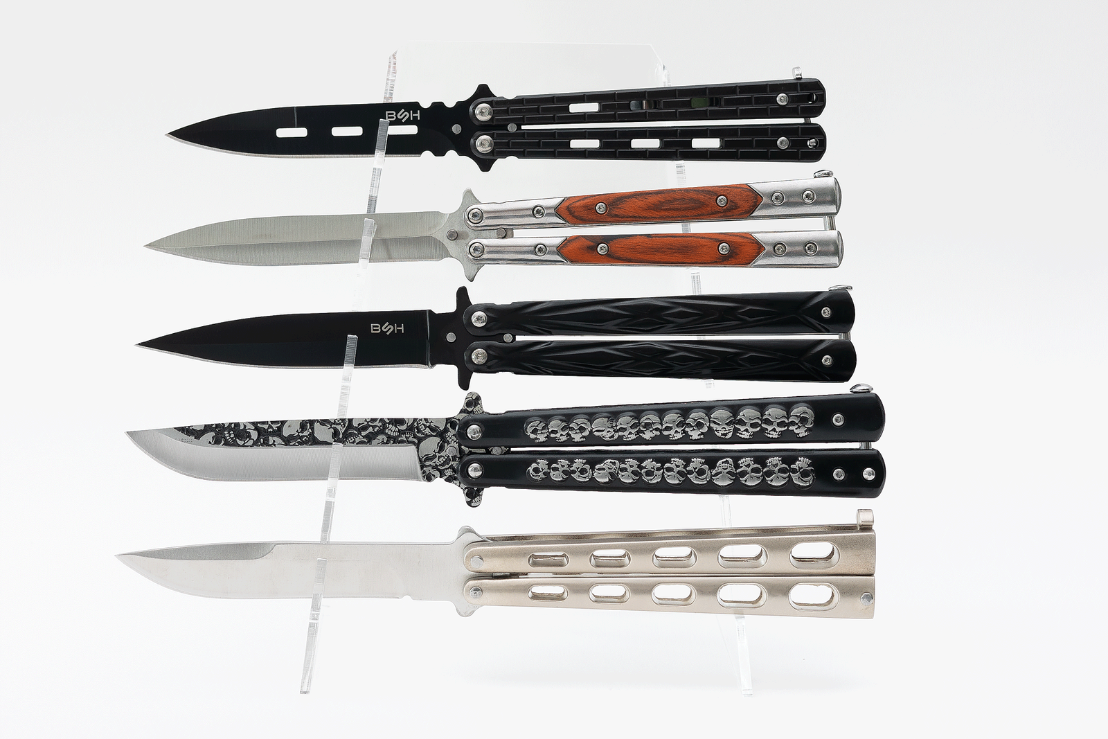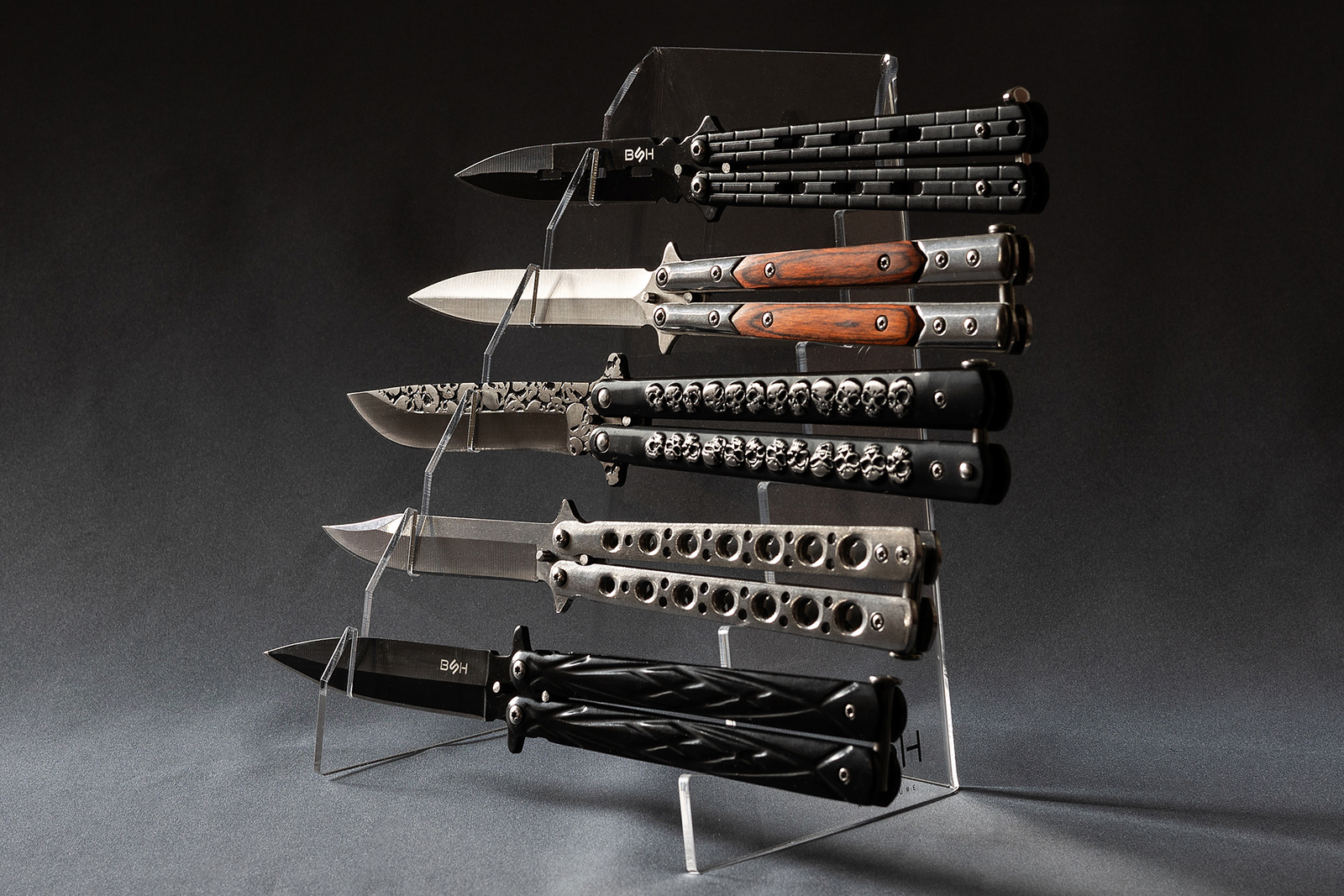 Wykonany z przezroczystego plexi o wysokiej przejrzystości, pozwala na wyeksponowanie do pięciu noży jednocześnie, nie przyciągając uwagi od ich detali, kształtu czy kolorystyki.