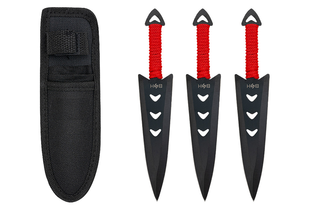 Czerwień linki pomaga także szybko zlokalizować noże, jeśli nie trafią w cel.