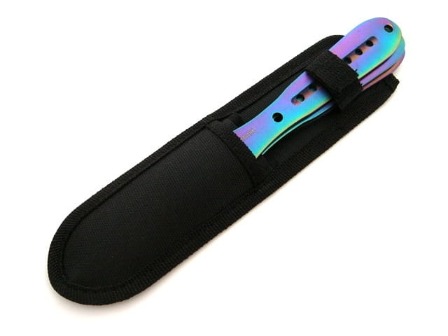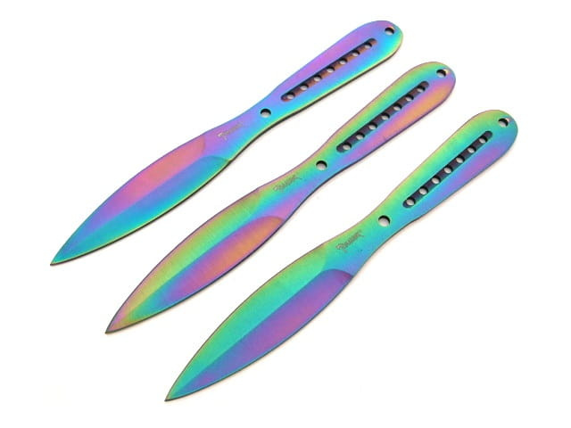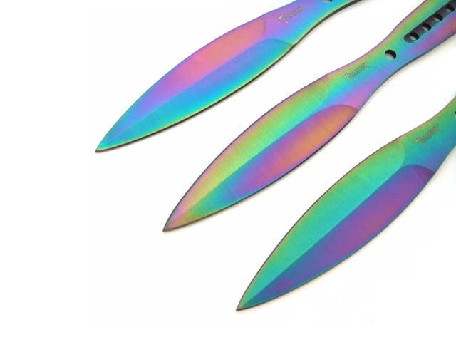 Zestaw spektakularnych noży do rzucania w wersji rainbow fade.
