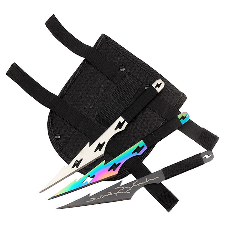 Spektakularnie wyglądający zestaw noży do rzucania, które dzięki doskonałemu wyważeniu przysporzą wiele frajdy.