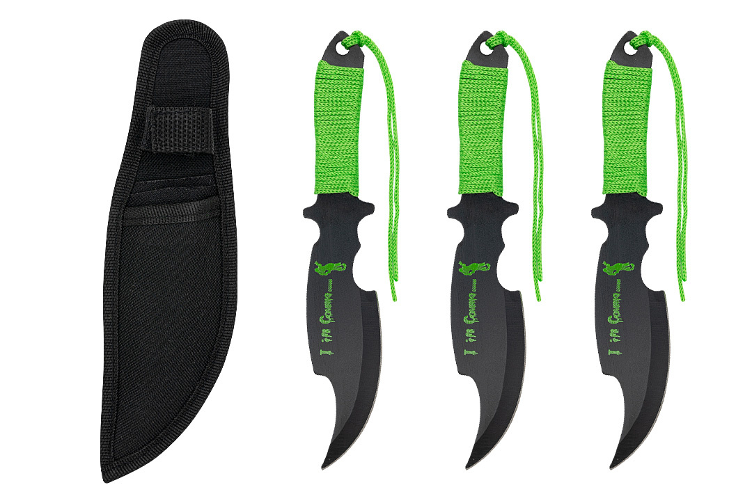 Rękojeści pokryte są jasnozielonym oplotem, a na ich środku znajduje się nadruk przedstawiający zombie, który robi oszałamiające wrażenie i nadaje nożom niepowtarzalny styl.